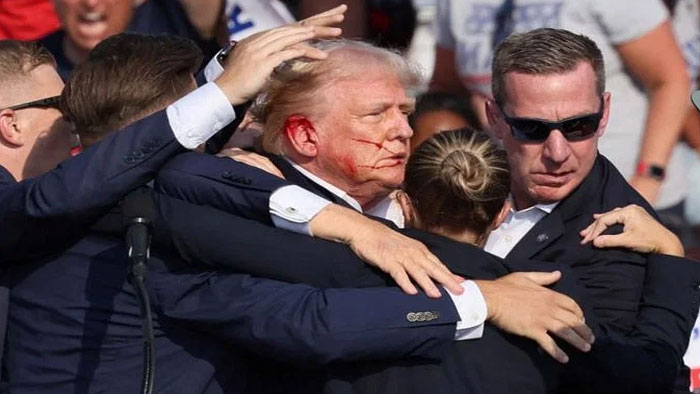 সংবাদমাধ্যমটি বলছে, স্থানীয় সময় শনিবার একটি সমাবেশে ট্রাম্পকে লক্ষ্য করে এই হামলা হয়। একটি গুলি তার ডান কানের ওপরের অংশে বিদ্ধ হয়েছে। দ্রুত পাশে থাকা এক গাড়িতে নিয়ে যাওয়া হয় ট্রাম্পকে। সেখানে তাকে প্রাথমিক চিকিৎসা দেওয়া হয়। তার প্রচার শিবির জানিয়ছে, রিপাবলিকান প্রেসিডেন্ট প্রার্থী সুস্থ আছেন। তাকে চিকিৎসা দেওয়া হচ্ছে। হামলার পর এক প্রতিক্রিয়ায় ট্রাম্প বলেছেন, আমাদের দেশে যে এমন হামলার ঘটনা ঘটতে পারে তা অবিশ্বাস্য। ঘটনার পর যুক্তরাষ্ট্রের গোয়েন্দা সংস্থা (সিক্রেট সার্ভিস) এক বিবৃতিতে জানিয়েছে, হামলার ঘটনায় বড় ক্ষতি হয়নি, নিরাপদ আছেন ট্রাম্প।